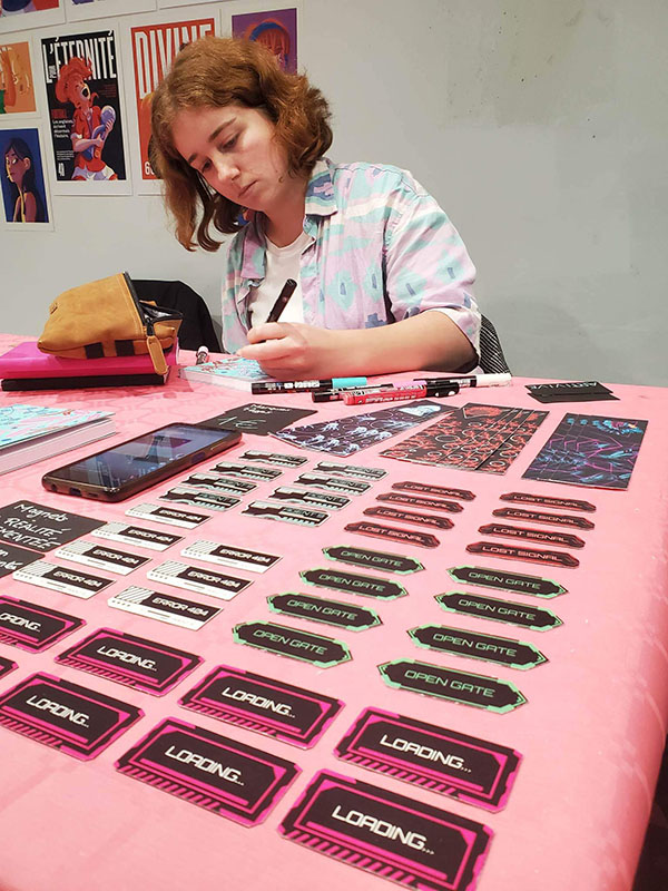 Mon plus gros projet à ce jour est la création d'un prototype de jeu vidéo d'arcade narratif, dont le scénario s'inspire de hackers connus des années 90, le tout dans une esthétique reprenant des codes visuels du rétrofuturisme.