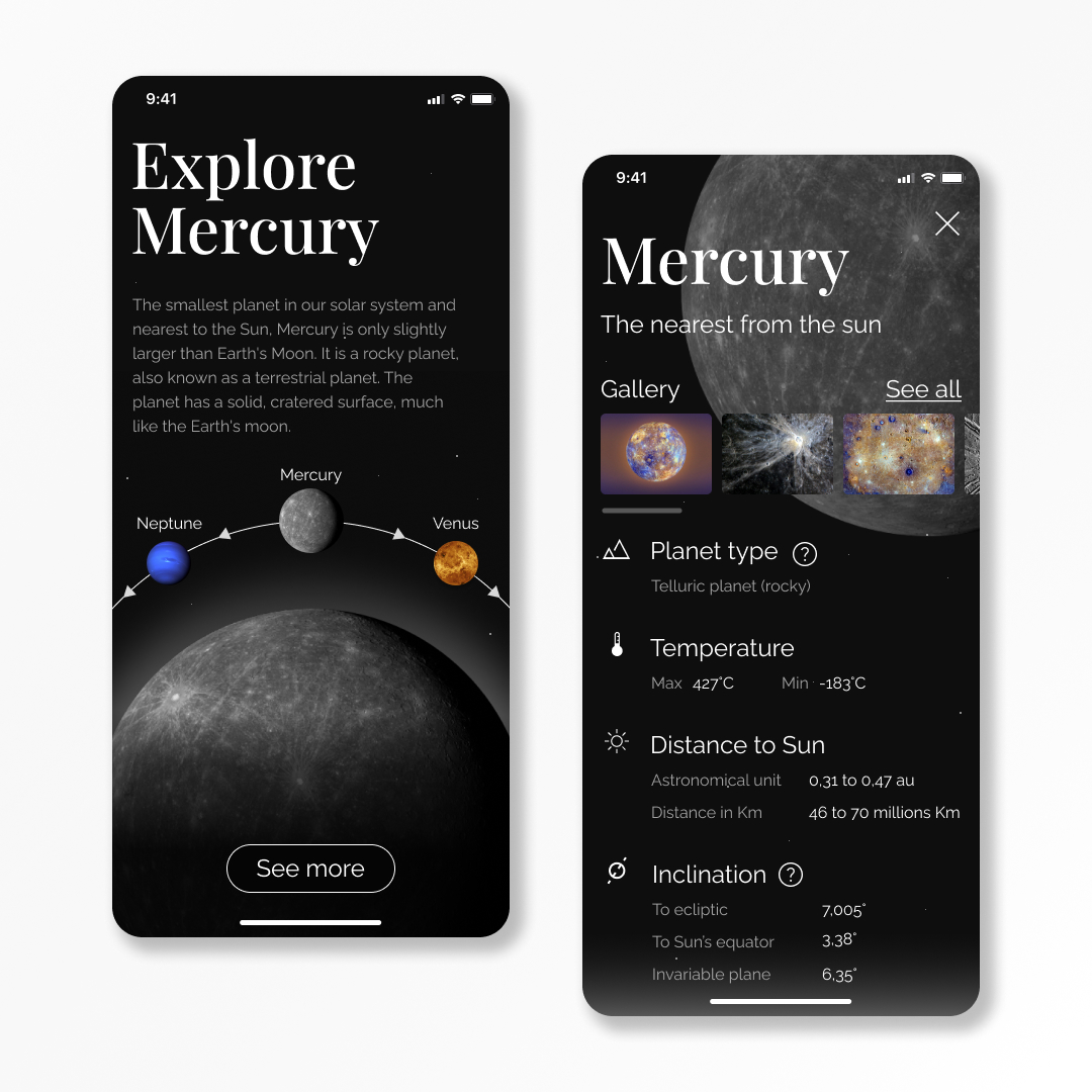 Mercure - Application de découverte du système solaire