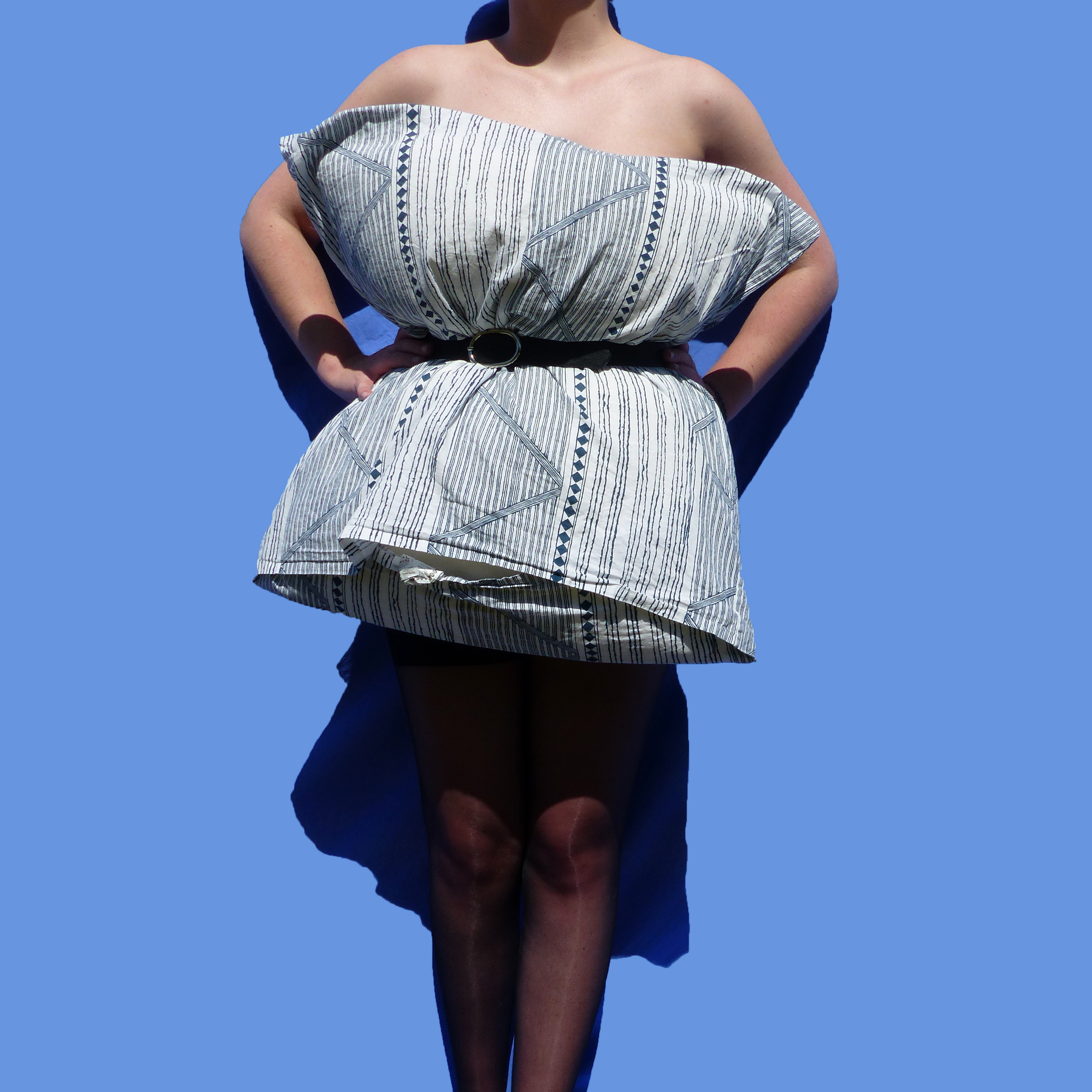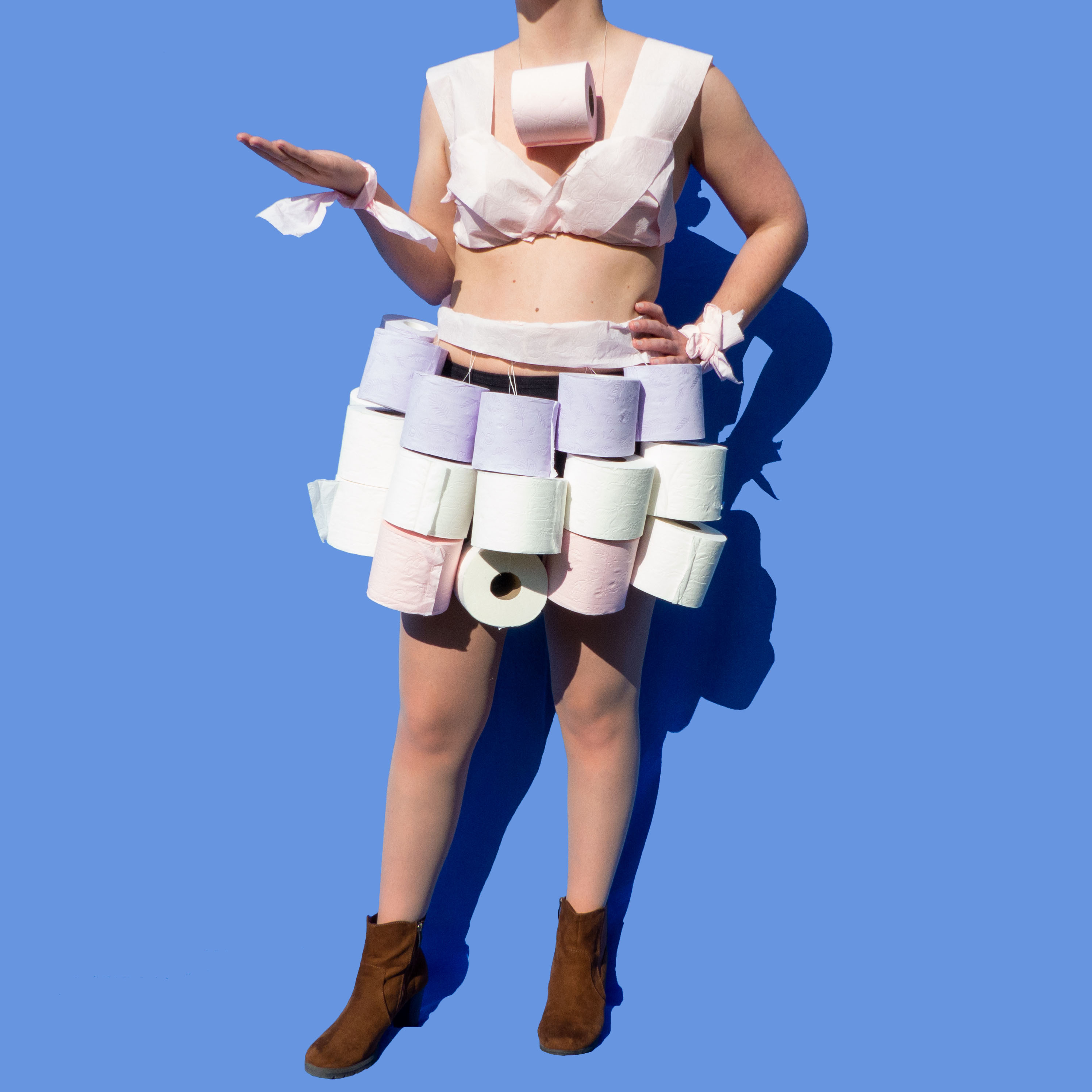 de mode «made in confinement» par le détournement d’objets. Par exemple en utilisant les rouleaux de papier toilette pour en faire une tenue, j’ai voulu me moquer des personnes dévalisant les rayons de papier toilette dans